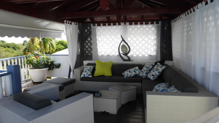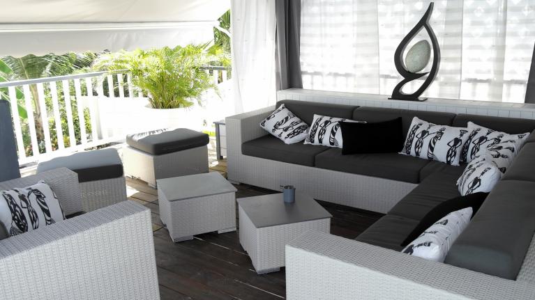 Face à la terrasse, un carbet vous accueillera dans ses canapés et fauteuils